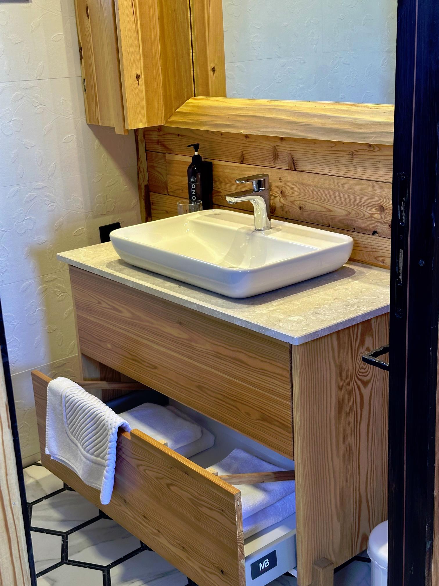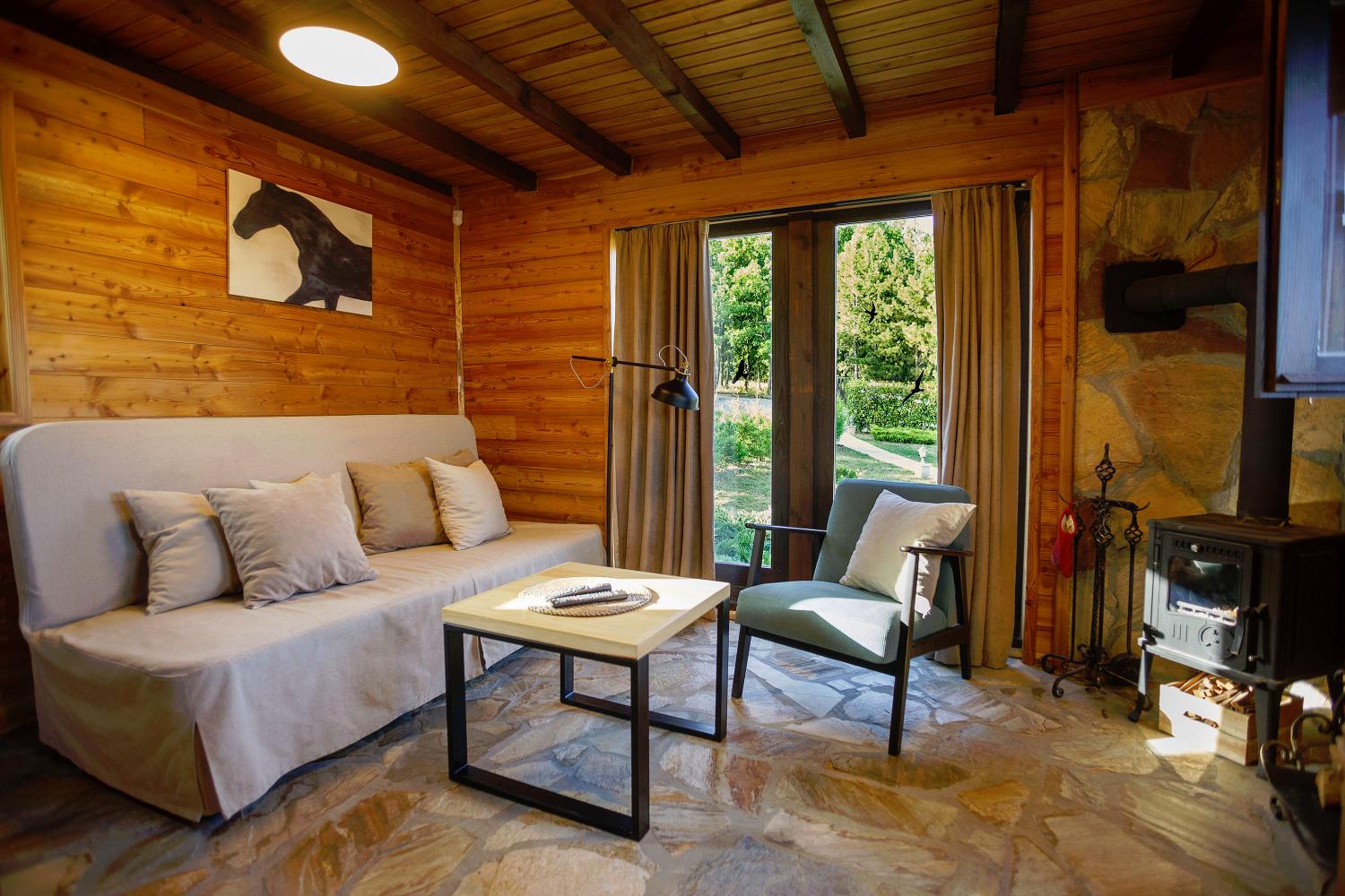 Svaki bungalov je pažljivo uređen, sa prostranom terasom, modernim kupatilom, klimom, pametnim TV-om, podnim grejanjem i kaminom. Idealni su za parove koji traže mir, ali i za manje grupe koje žele da uživaju u odmoru uz maksimalnu udobnost.